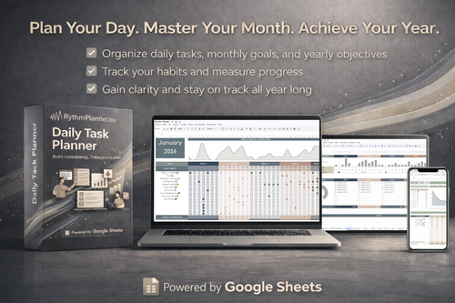 Rhythm Planner is a high-performance system designed to help you build discipline, track habits, and execute your goals daily.